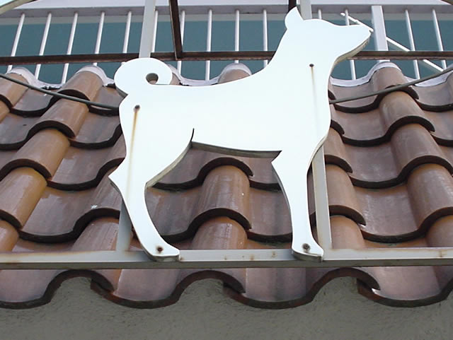 聖痕 大阪市、城東区内。ある動物病院の看板。犬のシルエットのデザインです。凛々しい姿は忠実な飼い犬のイメージみたいです。釘の跡が聖痕を連想させます。ペット達の守り神です。