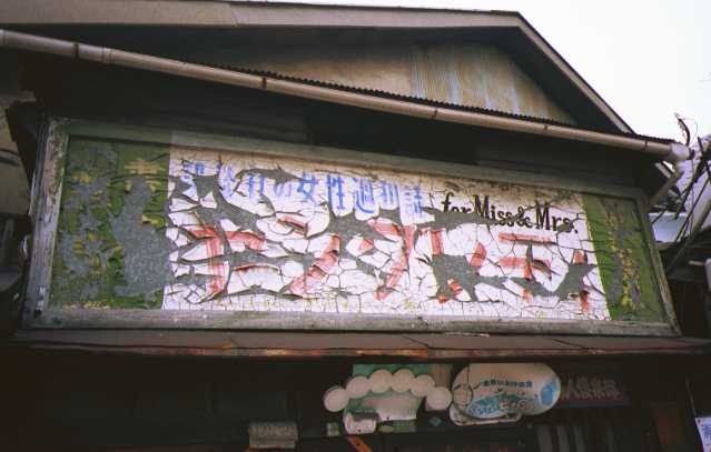 ヤングレディ 市内にて、すさまじくペンキの浮き上がった書店の看板です(もう書店としては閉店していますが)。「ヤングレディ」の文字から受ける印象と看板の状態の落差が独特の雰囲気を演出しているようにも思えてきます。そういえばこのような板の看板を掲げている書店を最近ではあんまり見かけなくなったような気がします。