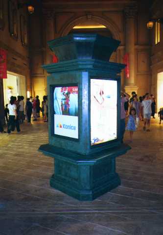 TFT(たぶん)看板 東京、ゆりかもめ「青海」駅近辺、VenusFortにて、一見写真を裏から照らしているようです。初めて見たとき、なにも感じずに通り過ぎたのですが、よく見ると画像が動くではありませんか。液晶を発明した人にはこのような応用はきっと思いもよらなかったと思います。