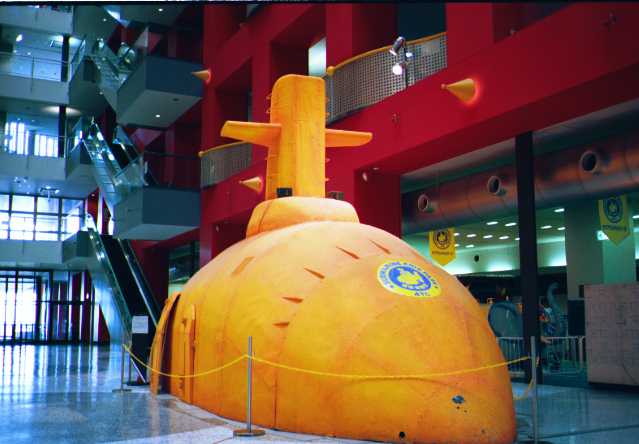 イエローサブマリン 大阪市内、ATCにて。大きな潜水艦です。中に入ることはできませんでしたがものすごく目立つものでした。これ以上潜水することも浮上することもできませんがやはり潜水艦です。