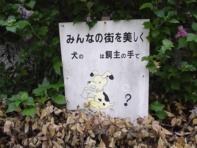 犬の目線 大阪市内、城北川の遊歩道にて。マロン氏(パピヨン犬)を連れて散歩に出るといつも目にする大阪市が設置した看板です。肝心な部分の文字が消えて文章が判じ物のようになっていますが訴えたいことは十分わかります。感心するのは、この看板、犬から見易い高さに設置してあることです。