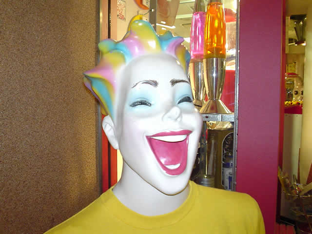 レインボーヘアー 大阪市内、ATCにて。いろんな店が密集しているところです。その通路を歩いているとこのマネキンが急に目の前に現れました。かなり派手な彩色ですが妙に下品ではない感じ・・。ストロボを焚いたので白く飛んだ調子になりましたが、中性的な雰囲気も漂っていて柄にも無く「芸術的」と受け取ってしまいました。
