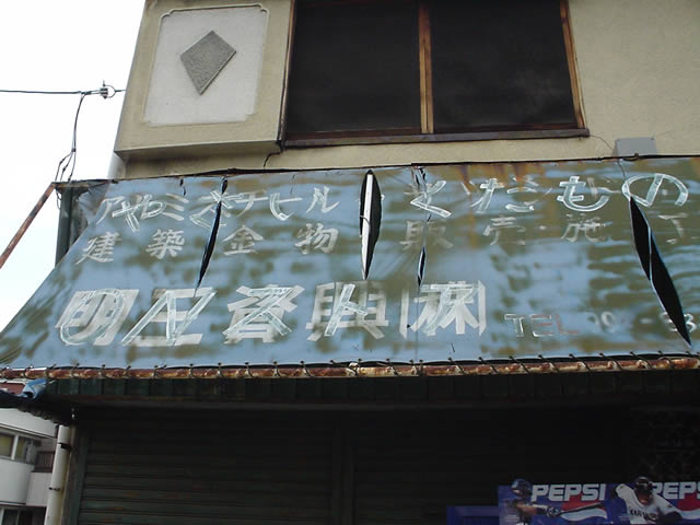 多重露光 大阪 守口市内にて。通勤の途中で見つけた看板です。過去何度も塗り変えられて使われ、長年風雪に耐えてきたのでしょう。今では塗り変えられることもなく、今までの履歴がオーバーラップして見えてきています。どこの街にもこういう看板がありますが、一番深い層の最古の文字が見えるようになったとき、それを見て当時のことに思いをはせることができる人はこのあたりに何人居るでしょうか。