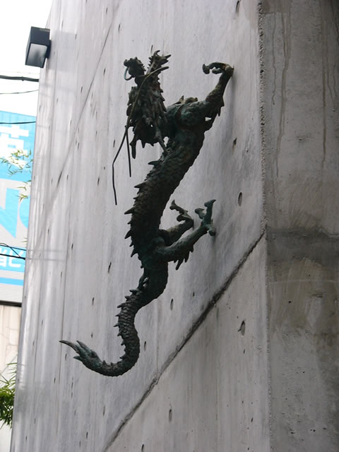 壁面のぼり 大阪市、梅田のあたり。あるレストランの外壁、コンクリート打ちっぱなしの表面をかけのぼる龍。直線の多い都会の景色にもうまく溶け込んでいるようです。