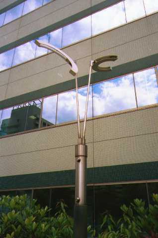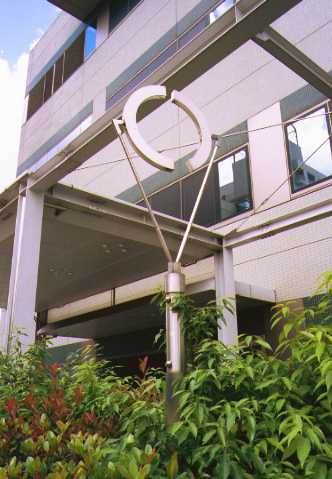 触角? 市内・総合医療センターにて、これが本当にモニュメントなのかどうかは判断する自信がありません。でも、これと同じ物が等間隔に配置されていてどれも少しづつ枝(?)の向きや傾きなんかが変えてありました。オブジェとすればかなり不思議な製作意図があるのかもしれません。