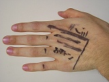 ![]() | 右手。 by Rina Akiyama 「りな」「ゆっこ」の他、文字が潰れてしまって読みづらいですがハートの部分に「ゆりあ」と書いてあります。莉奈ちゃんはどうやら書きたくて仕方なかったらしい…(笑)。 |
