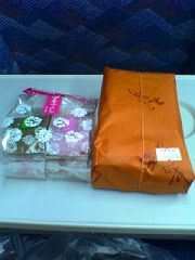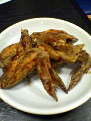 | 手羽先(全景)。 世界の山ちゃん。ホッピーも飲めます。店のオリジナルメニューが多め♪ | 手羽先。 この写真だとなんか美味しそうに見えない(--;。とりあえず、一人十本ずつ。 | 帰りの新幹線にて。 左がういろう、右が天むす。お腹いっぱいと言いつつ、豊橋通過前に完食。 | |||||