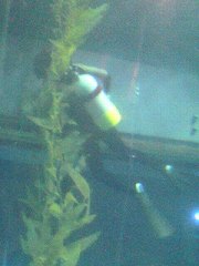 | まんぼう。 正面から見るとちょっと怖いです。あ〜ん。ごめんよ、まんぼうくん。 | おにぃさん(笑)。 掃除中です。お疲れ様です。 | ・・・。 よく分かりませんが、じっとこっちを見てたので。えへへ。 | |||||
