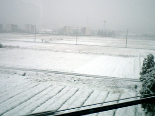 んで気がつくと31日の午前4時・・・あれ? いつの間に時間が、というかニュース見てたら雪がやばそうだったので最速で荷造りして宅配便の手配&チェックアウト。大晦日に足止めをくらうのは避けたかったので止む無く「のぞみ」を選択(↓の写真は車内より)。上京時の3倍の出費で所要時間は1/3、まさに時は金なりを実感しながら無事に帰阪。
