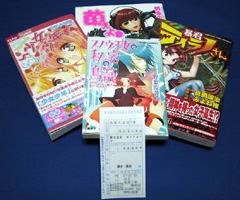 ・そして\10000の振り込み領収書...orzいろいろ振り込みに行かないといけなかったので、ついでに近所の本屋を覗いてみると、ようやく再販が入荷した様子の「戦車学校」とか、「薔薇のミルフィーユ」を買ったので出てるのは気づいてた「よかったり悪かったりする魔女」の新刊とか見つかって即回収。それはいいんですが、何かこう、胸のあたりがいまいちスッキリせんというか、やり場のない怒りみたいなのがモヤッてるのは、あんだけ無駄足を踏んだ上に未だに買えずにいた「わー太vol.3」が、普段あんまり利用しない店に『灯台下暗し』というか私を嘲笑うかのごとく鎮座していたことを認めたくないのかも(^_^;