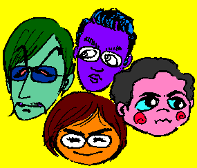 モデルは竹谷清史(左)・赤塚学(下)・中島立雄(右)・嵐清智(上)となっている。