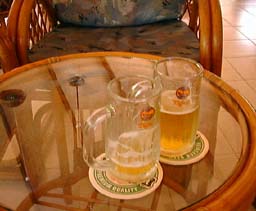 モルジブの何処かで、ダイビングのあとバーで生ビールを飲みながら