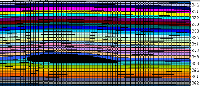 (戻る) 表計算ソフトのグラフを描く機能で今回の試験模型(※) の翼が、どういうふうに水を切って進むか、その断面を予想してみました。 本物の水や海水での計算はむずかしいので、非圧縮&粘性無しの流体で計算した結果です。↓ (※)オレンジ色のほうの模型で、コードネームは 「大和撫子」